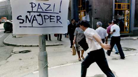 Bosznia-Hercegovina fővárosának ostroma 1992-től 1996-ig tartott, a közelmúlt történelmének egyik leghosszabb ostroma volt. A Ratko Mladić vezette Boszniai Szerb Hadsereg körülvette a várost, bombázta és civil célpontokat vett célba a várost körülvevő hegyekben lévő állásaikból. „Vigyázz, mesterlövész!” feliratokat helyeztek el Szarajevó egész területén figyelmeztető jelként.